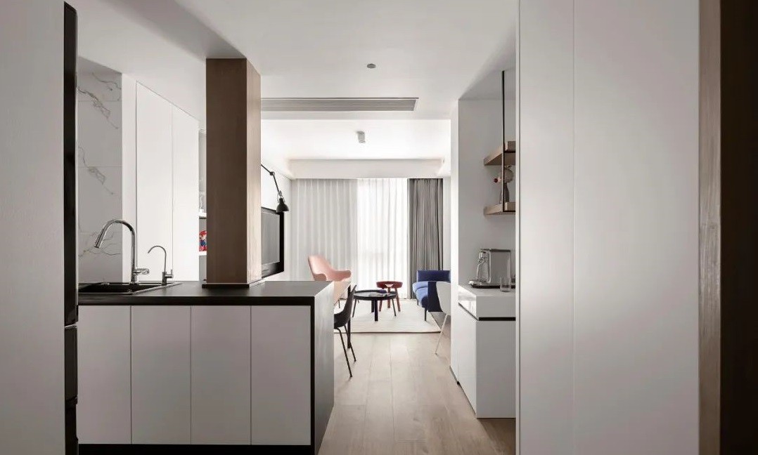 动线优化:连接了厨房、餐厅、卫生间和卧室,动线极其流畅。