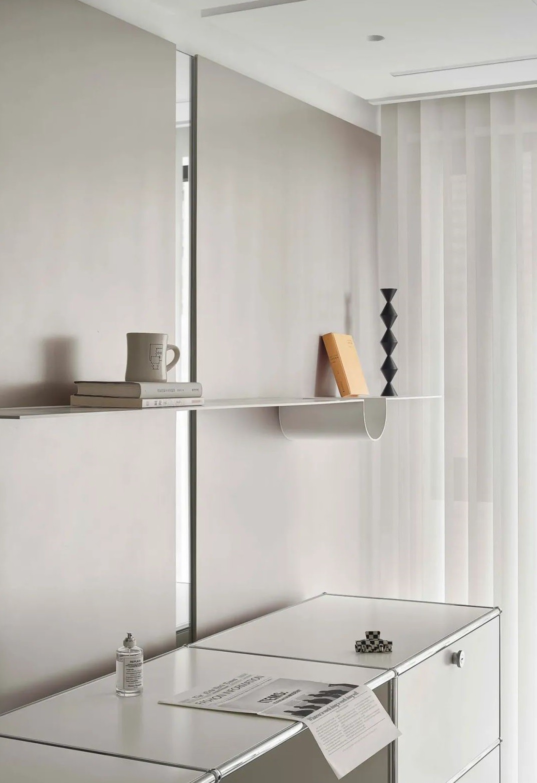 镜面垭口:用镜面不锈钢包裹阳台垭口,将视觉弱点变为设计亮点,实现空间延伸。