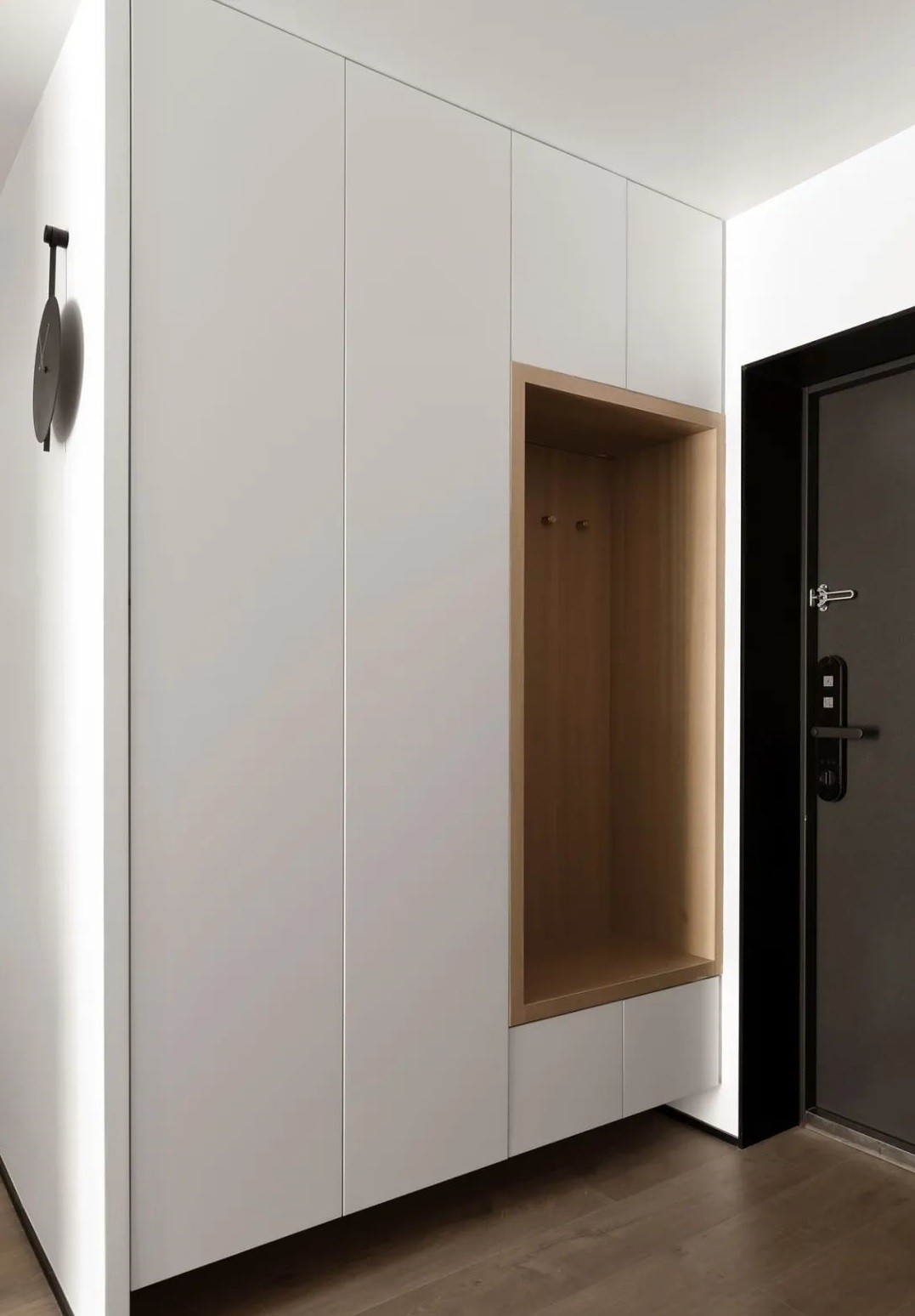 设计亮点:内退墙体,定制通顶组合柜(鞋柜+换鞋凳)。
